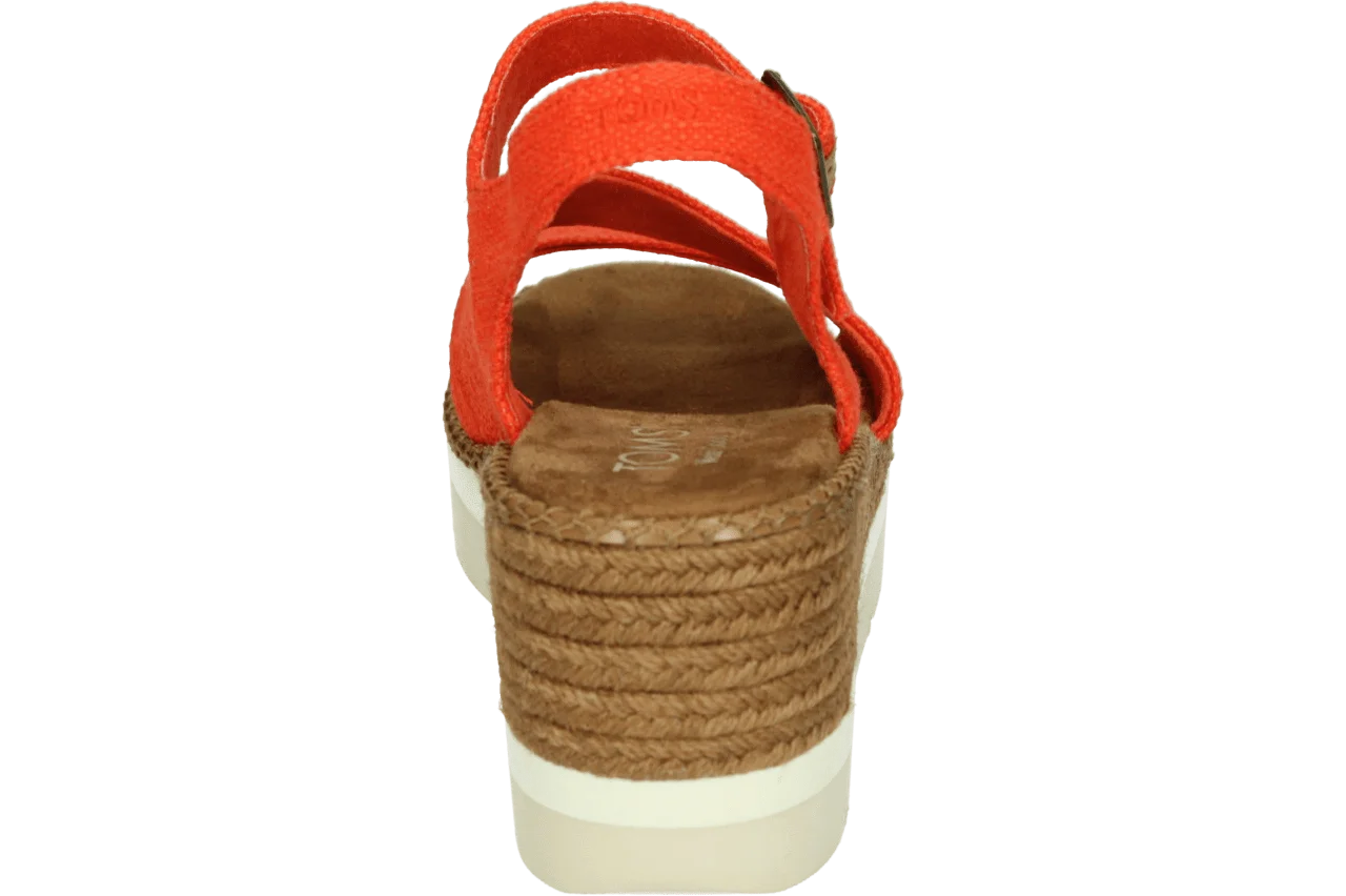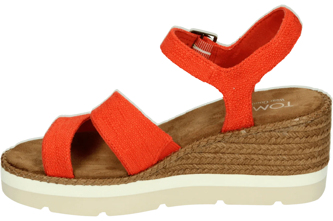 Dit artikel betreft een damessandalen sportief van het merk TOMS Shoes. De modelnaam is DARYA en de kleur is rood. Het product heeft een wijdte G en een vast voetbed. De zool is van rubber en het materiaal bovenkant is van linnen.